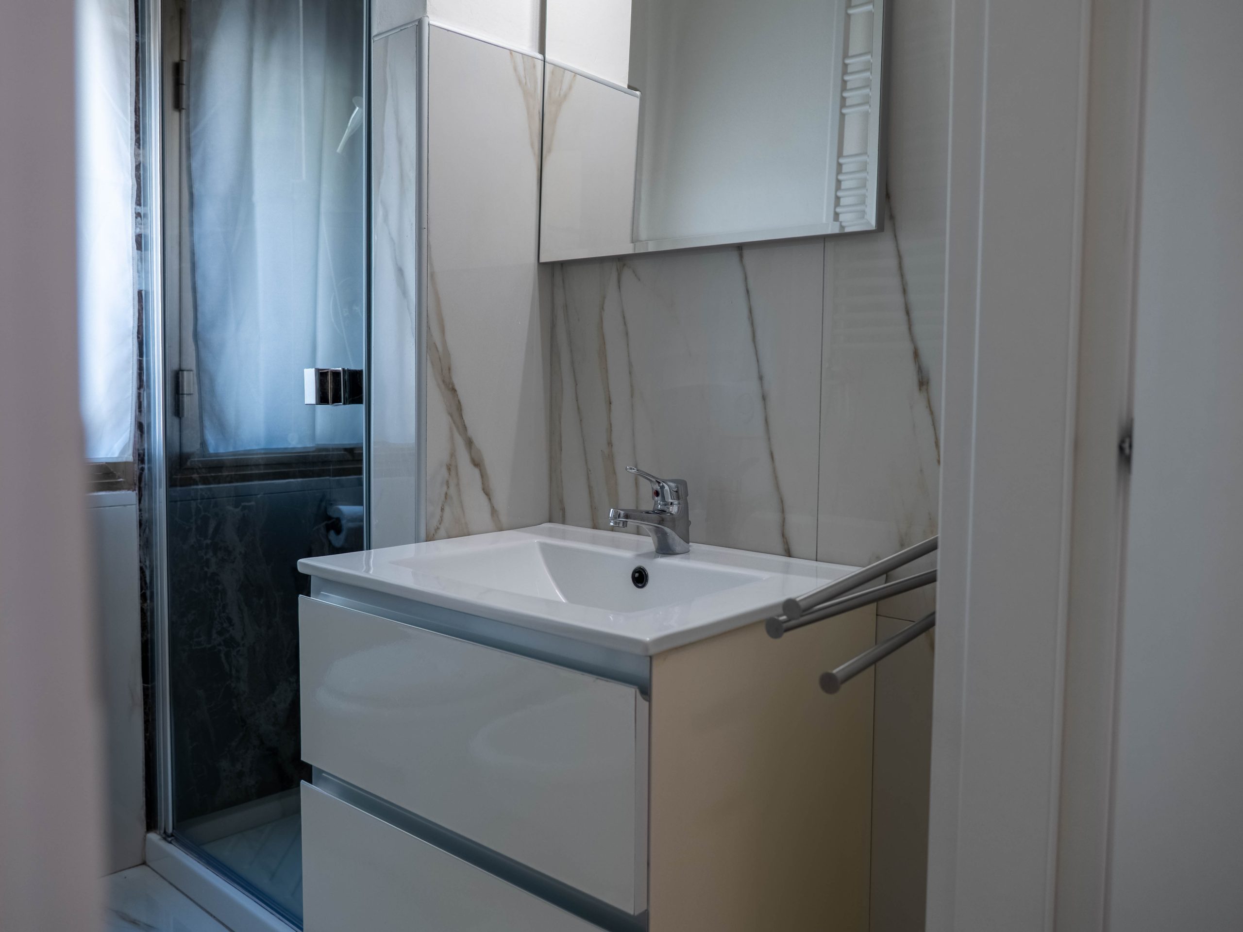 Mini appartamento con camera matrimoniale piu letto singolo, zona pranzo, bagno e balcone.