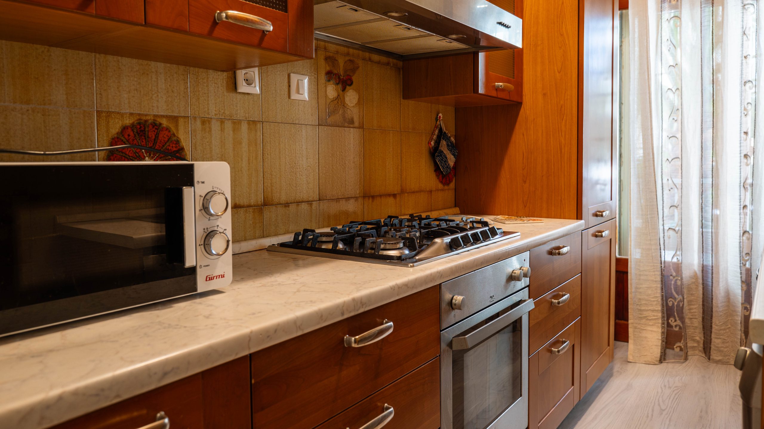 Cucina dotata di microonde, lavastoviglie, forno, soggiorno con tv lcd , bagno con lavatrice, due balconi.